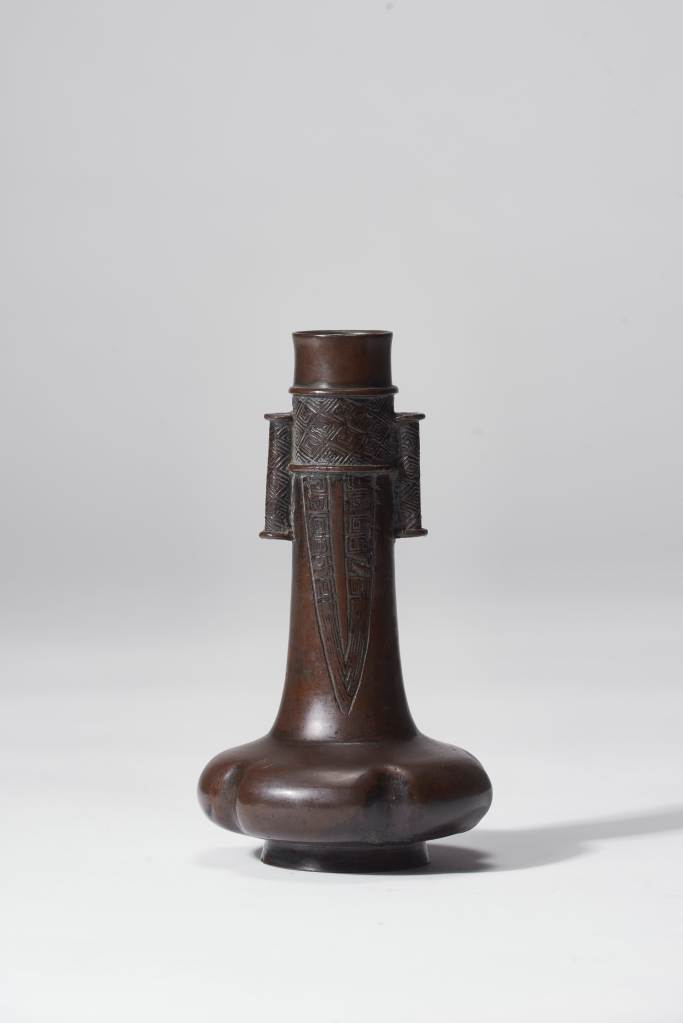 古銅直頸雙貫耳瓶