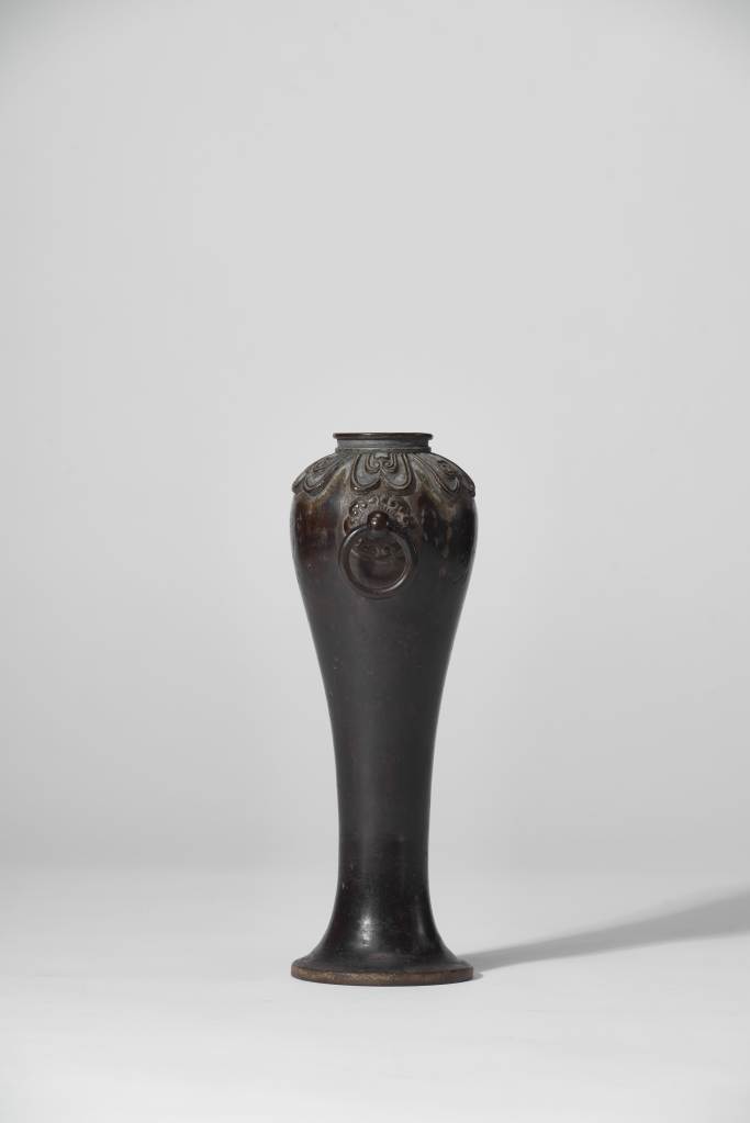 The mouth is lip-shaped, the shoulders are full, the belly of the bottle is introverted, the arc is smooth, and the shoulders are decorated with two-ring ears, which is a special shape.