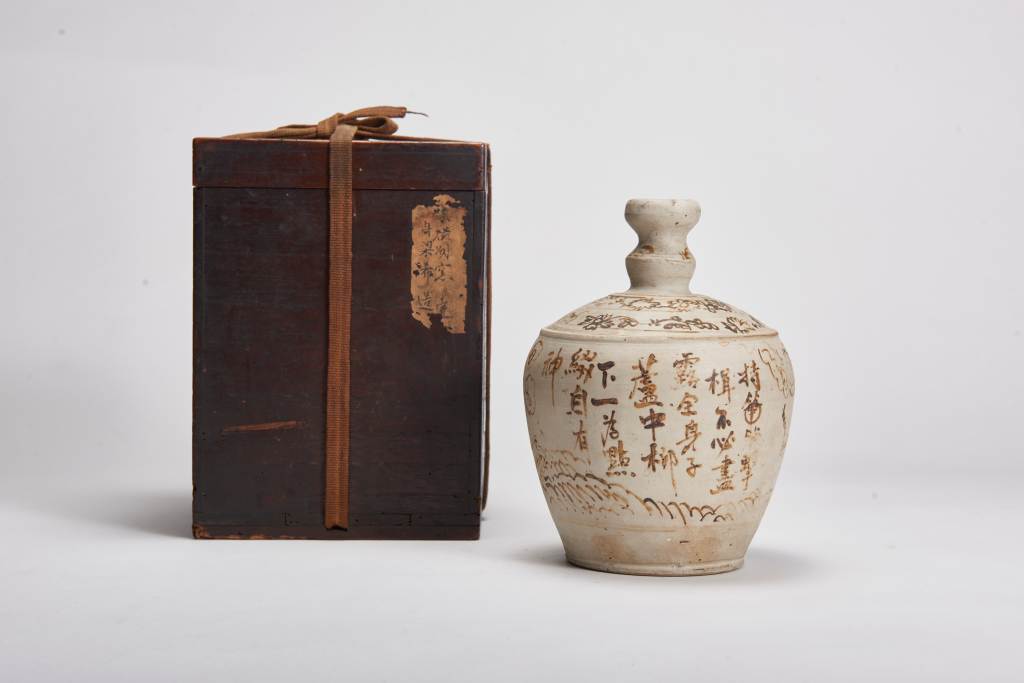 葫蘆瓶自唐以來因其諧音“福祿”,而器形又像“吉”字,所以又名“大吉瓶”,寓意大吉大利,被大眾所喜愛,遂成為經典的吉祥器形。 搭配磁州窯寫意的風格,流暢的筆觸很好的表現出民間的純樸,與希望一切安順的質樸心意。 器型特殊,釉光溫潤,畫片寫意,底款周梁希造,難得少見日本傳世品。