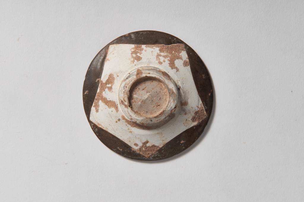 盤上褐釉,繪連珠紋花瓣,為唐代常出現之紋飾